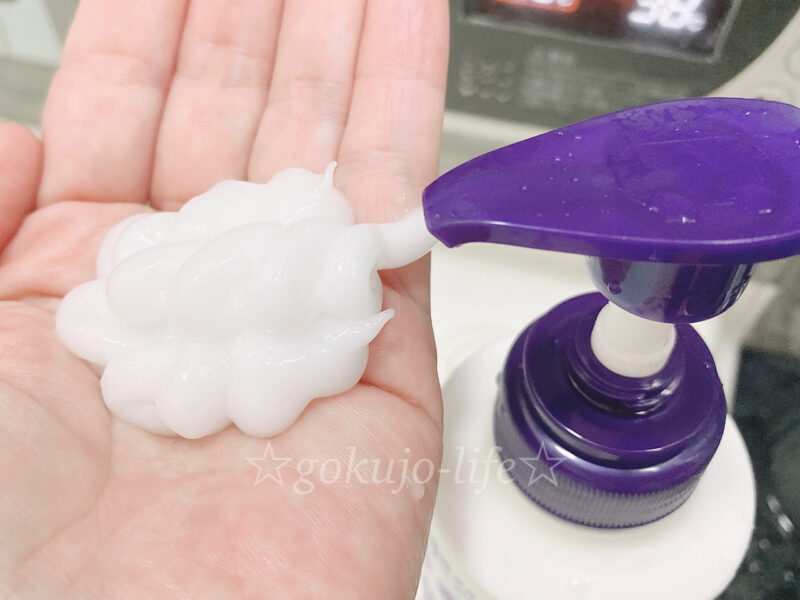 ノンシリコンでもクリーム状なので、キシキシすることもなく、しっとりした洗いあがりになります。