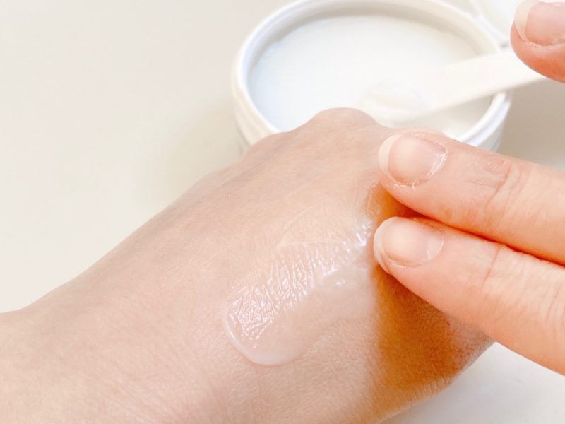 付属のスパチュラで少し取り、肌に馴染ませると・・・