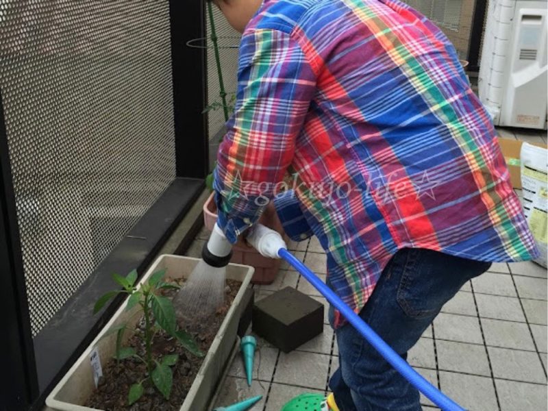 種蒔きから全て家族一緒にやり、毎朝の水やりは息子の日課としました。