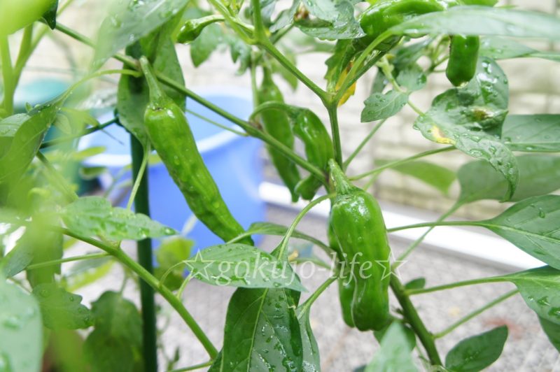ししとうもかなりたくさんの実が付きます。水やりをするだけでたくさんの実をつけてくれるので、まさに初心者向き。
