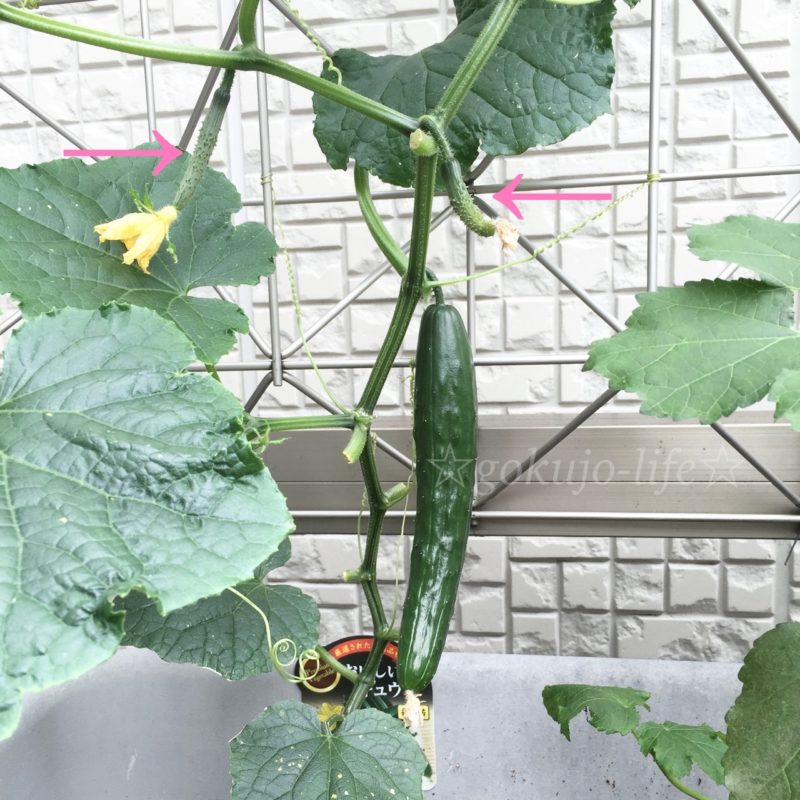 ゴーヤと同じく雄花と雌花があり、雌花には小さなきゅうりの赤ちゃんが出来るのを見るのもなかなか楽しいです。